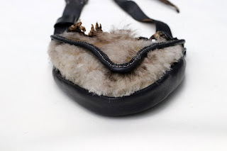 No. 220: Opossum hide; deer hide; antique textile; antique buckle.